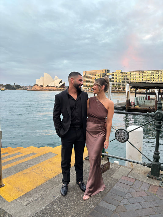 FAZILAH | Brown Distressed Plunge Mini Dress