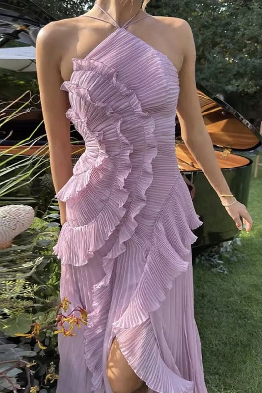 FAZILAH | Alvara Halterneck Lace Panel Maxi Dress